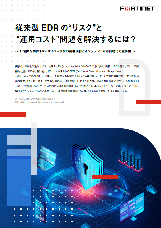 高度化・巧妙化が進むサイバー攻撃を、AV(アンチウイルス)やNGAV(次世代AV)製品で100%阻止することが困難な状況にある中、侵入後の対策として注目されるEDR。